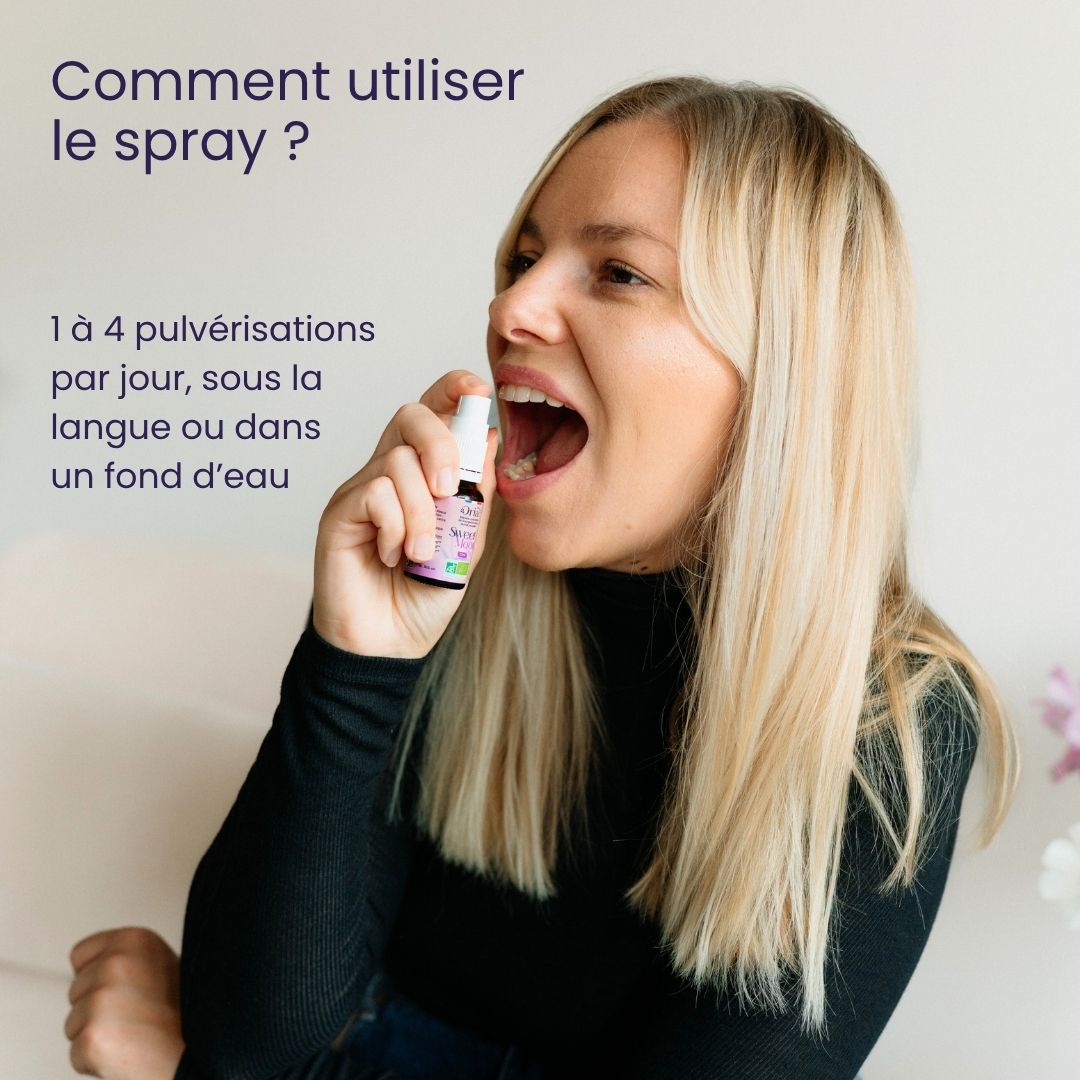 En paralèlle de l'infusion sweet Moon, 1 à 4 pulvérisation dans la bouche ou dans un fond d'eau.